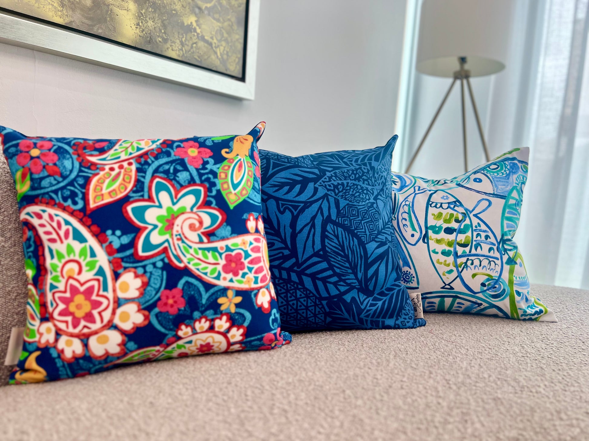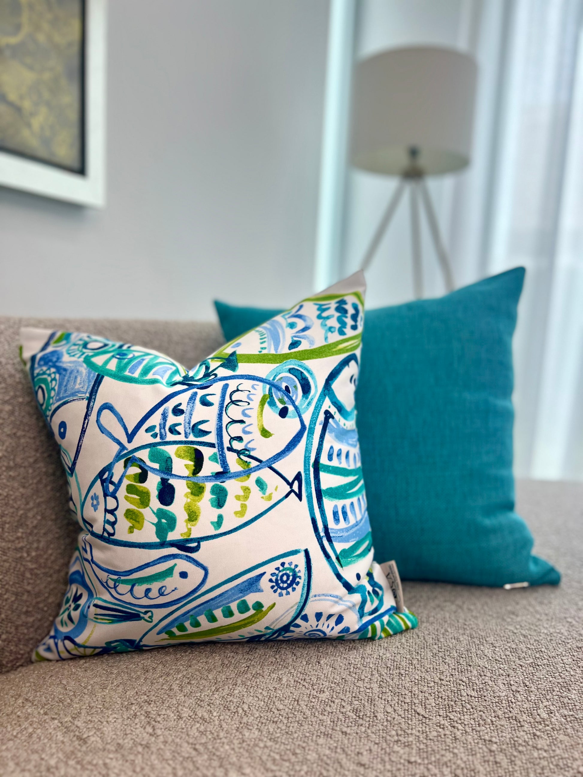 Add a splash of fun to your outdoor decor with this fish pattern pillow cover. The bluish colors are perfect for a beachy or nautical theme.