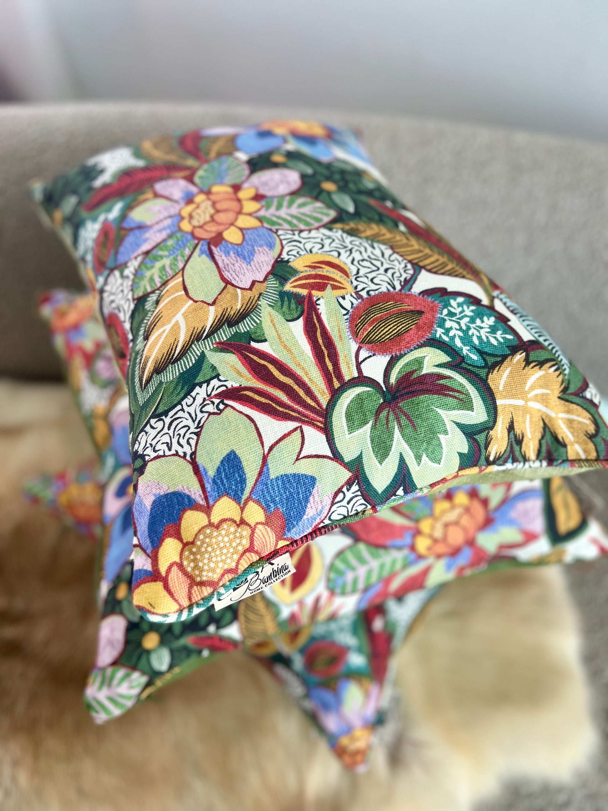 This exclusive Tropic Muse Pillow Cover is part of our designer collection and features a water and sun resistant polyester fabric. Its unique design adds a touch of style and durability, making it suitable for both indoor and outdoor use. Experience the utmost quality and luxury with this stunning piece with Stroheim/ Fabricut textile.